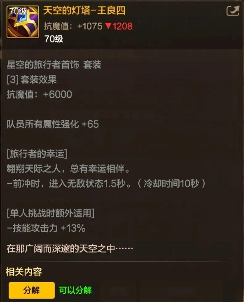 地下城勇士(天空的灯塔)属性:增加17 所有攻击力增加10 三速套装效果额外提升20 伤
