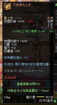 地下城勇士(万世荣光上衣)属性:核心力量增加200技能攻击力增加18