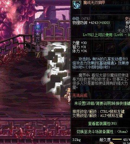 地下城勇士(魔战无双肩甲)属性:搭配魔战套可实现技能循环极快的续航玩法