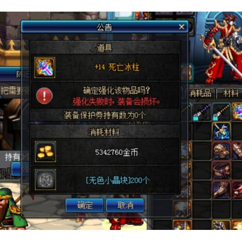 地下城勇士(死亡冰柱)属性:强化增加 40攻击时附加15 冰属性伤害