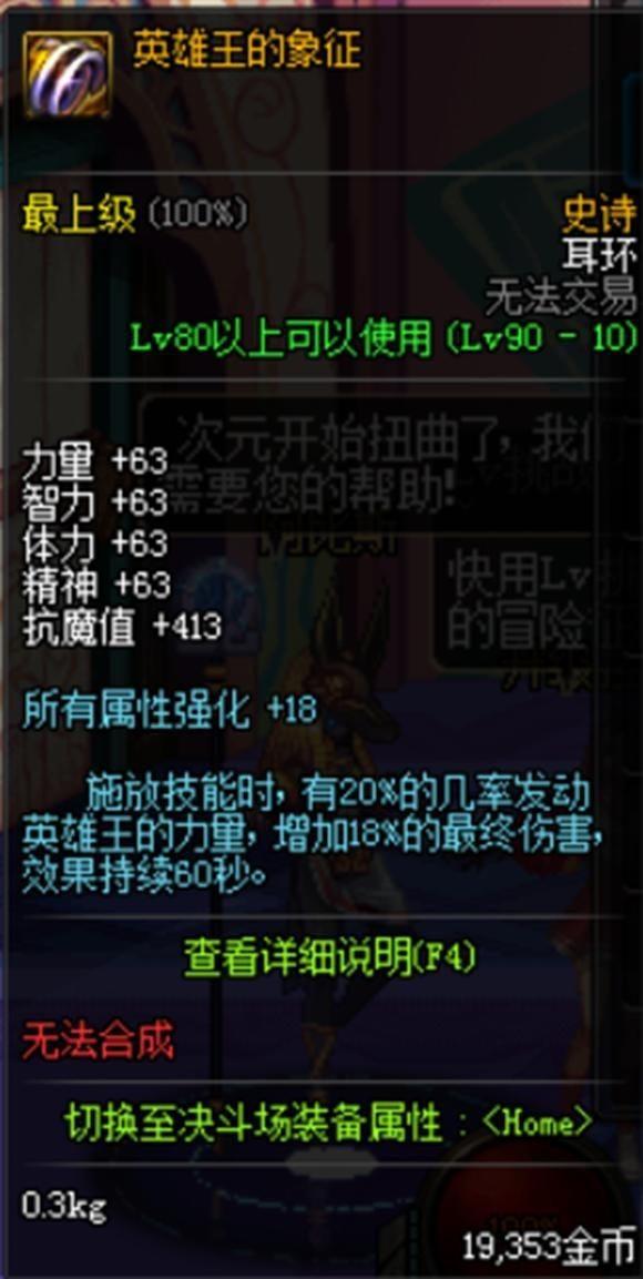 地下城勇士(罗塞塔石碑)属性:增加18技能攻击力所有属性强化增加18触发后有特效环